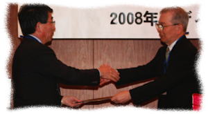 from the left: President T. Kato, VPE T. Kiribayashi, VPM H. Sekine,