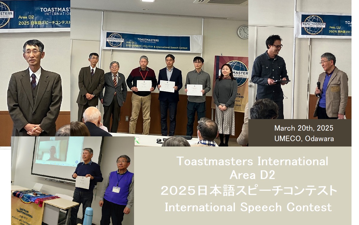 今回はまず先日行われたエリアD2のスピーチコンテストについてすばらしいご報告です