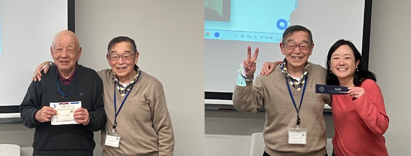 TMOD 賞はヤッシーさんです。 TimerとVote Counterの両役を行い、部屋のWiFiが不調で、スマートフォンを提供していただき、Zoomとのハイブリッド例会を可能にしてくれました。