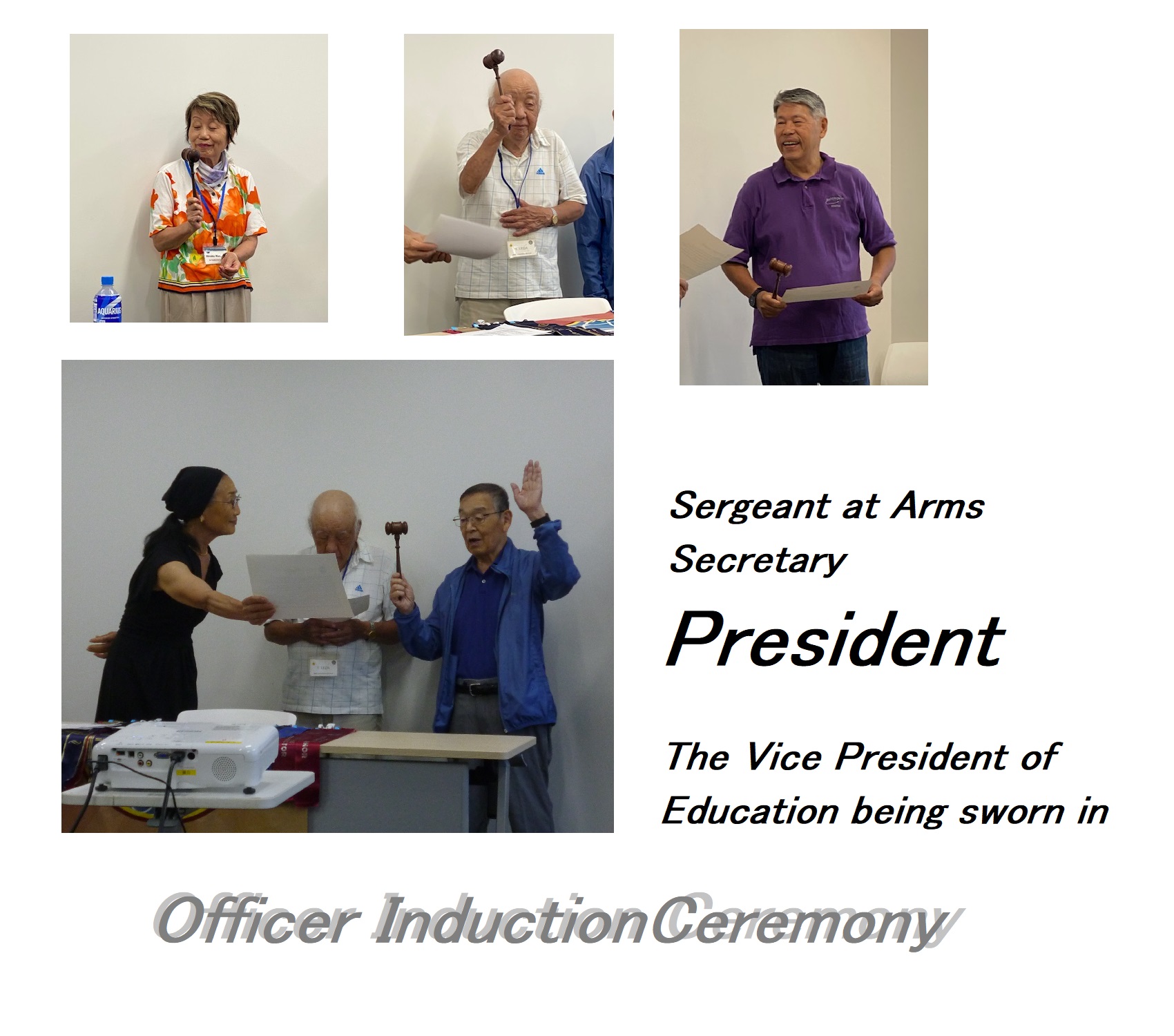 つぎに新役員が整列し、司会者が各自に役割の説明をして実施意思を確認します。 各役員はI willと力強く返答されました。