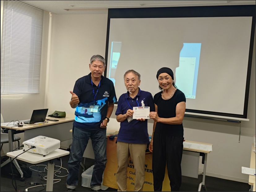 最後にアワード受賞式です。今日のベストTT賞は自分が一番好きなスポーツについて語ったIchiさん その例会の司会を担当するTMODがその例会にいちばん貢献した会員に贈るTMOD賞は時間ルールがいつもとちがうプロジェクトを含む今日の例会ではじめて計時係をつとめたMinoruさん でした