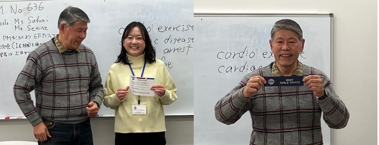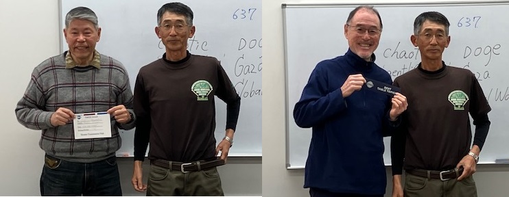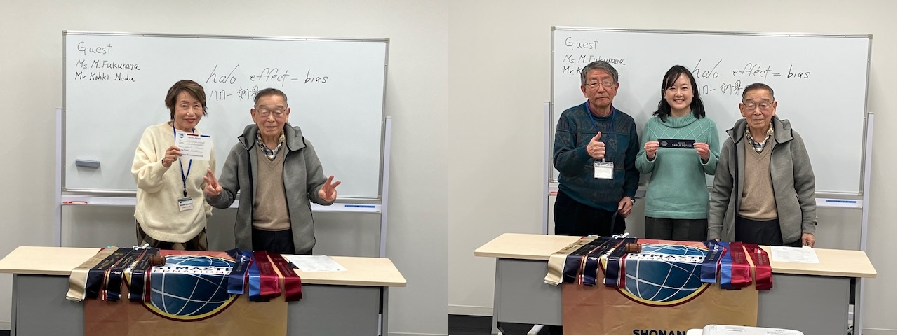 Here is the report of Our regular meeting #637 on February 22, 2025, facilitated by TMOD or emcee Tsukasa. It was held at F-place 301 with 9 members and incredibly, 4 guests! We had a Declaration and Induction ceremony for former member Helen Sekine who has decided to return to the club. Helen, welcome back to Shonan! We found the 4 guests to be all experienced English learners, so we learned a lot from them.